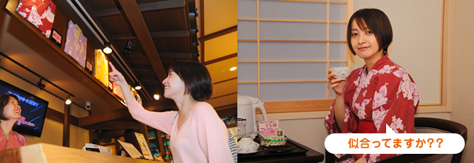 チェックインして、まずは、お好みの浴衣を選びます。 浴衣は全部で5種類!わたしは赤系が好きなので、「あじさい」柄のコレをえらびました!