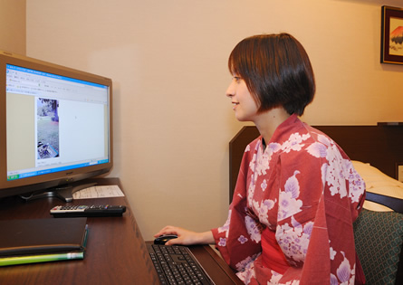 すっかり癒されて、お部屋に戻ります。お部屋にはPCがあって、これは便利!おやすみ前にウェブをチェック。