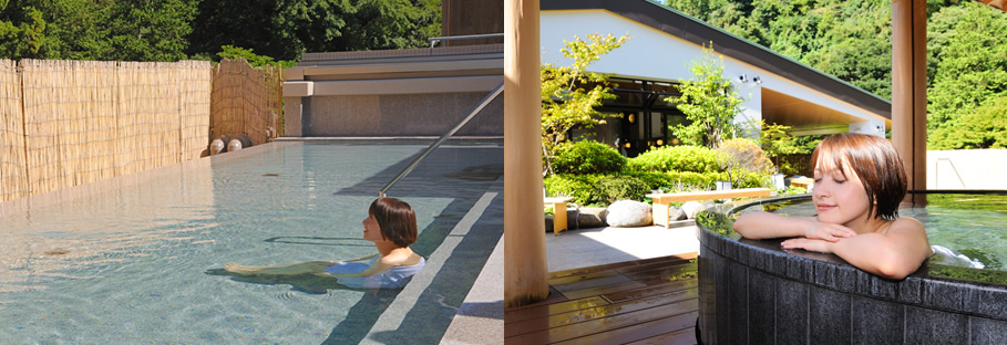 さて、いよいよ本命の「屋上天空大露天風呂」です! どうです?つい泳ぎたくなっちゃうようなこの開放感! 箱根の自然の景色のなかで天然温泉を思う存分、満喫しちゃいました!