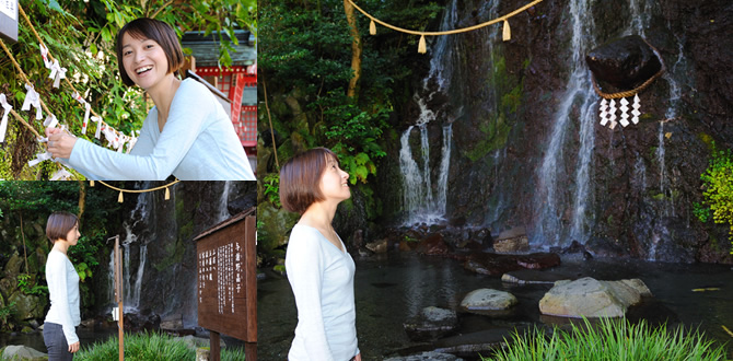 活動再開!庭園に出て、有名な「玉簾の瀧」や「玉簾神社」を見学。あの与謝野晶子もこの滝が大好きだったそうで、この滝にちなんだ彼女の歌も滝の傍らで紹介されています。