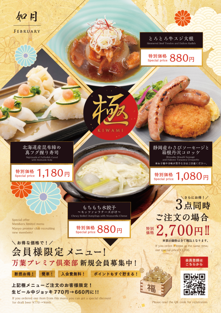 万葉プレミア倶楽部にご登録いただくと、こちらのメニューをご注文いただけます。