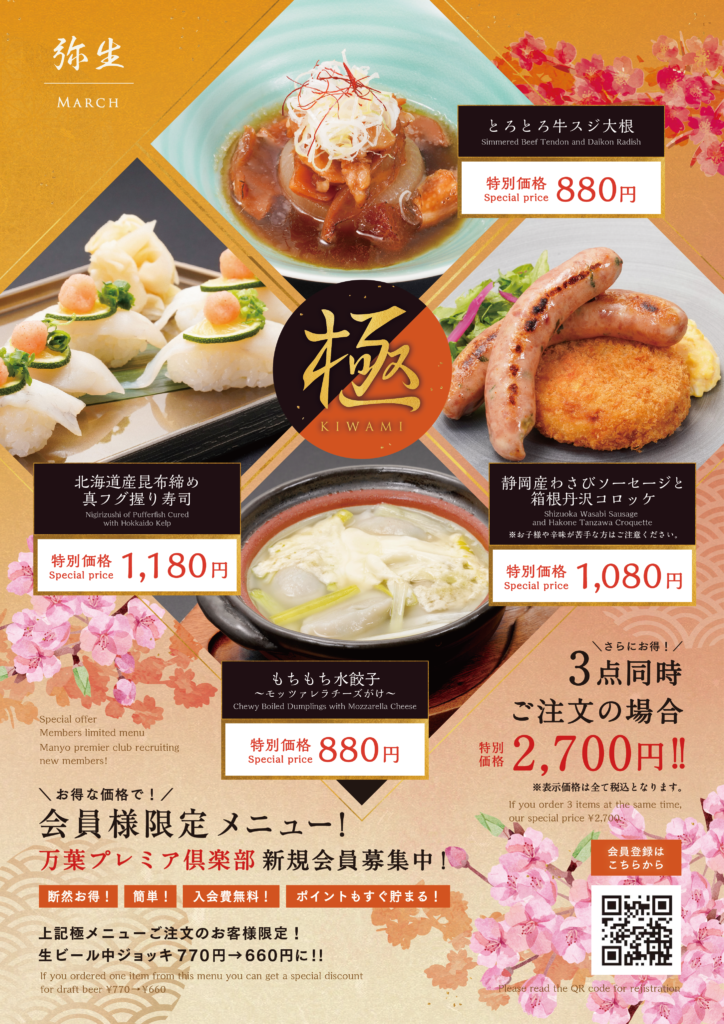 万葉プレミア倶楽部にご登録いただくと、こちらのメニューをご注文いただけます。