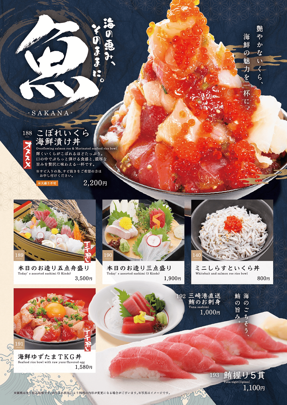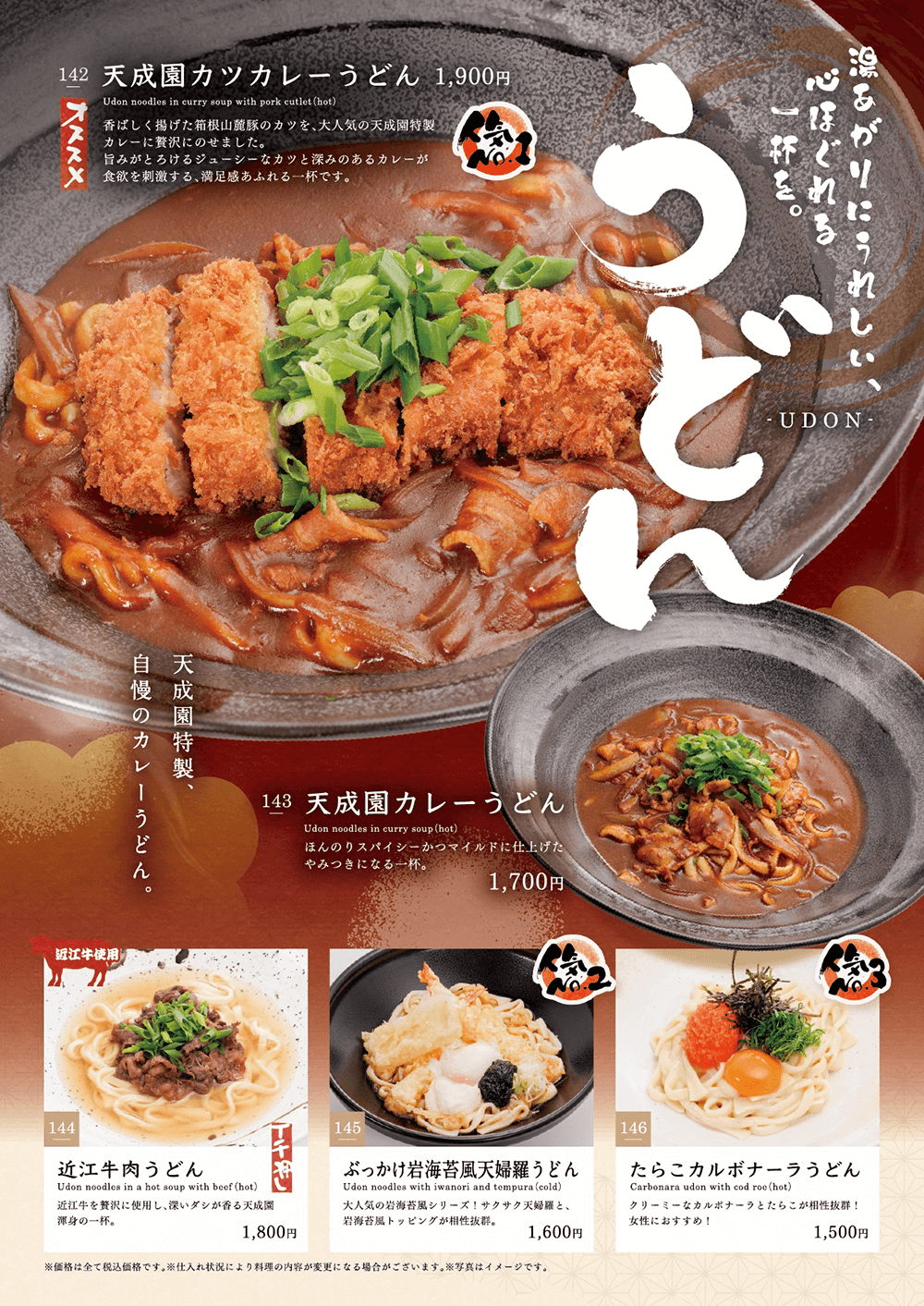 皆さまにご満足いただけるようメニュー数を豊富にご用意しております。