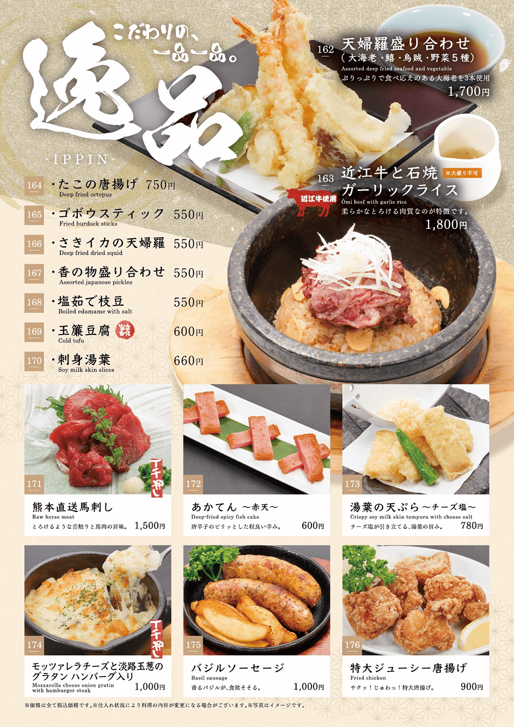 【10/1~】瀧見亭・夕食時60分飲み放題 価格・対象メニュー改定のお知らせ