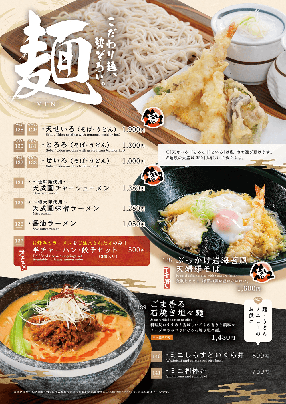 ちょっと豪華な御膳メニューから麺類やお重、アルコールやおつまみ等、